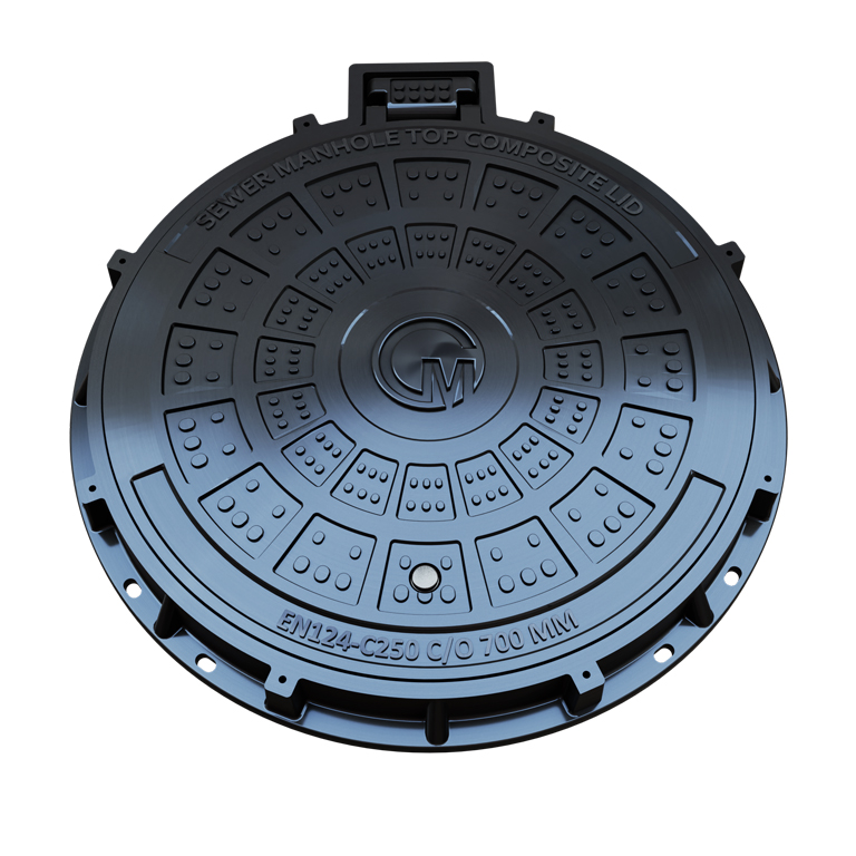 Innovative material improvements and structure performance, JM-MR111D high loading capacity Composite Manhole Cover conforms to BS EN124 D400 Class and is suitable for carriageways of roads(including pedestrian streets), hard shoulders and parking areas for all types of road vehicles.